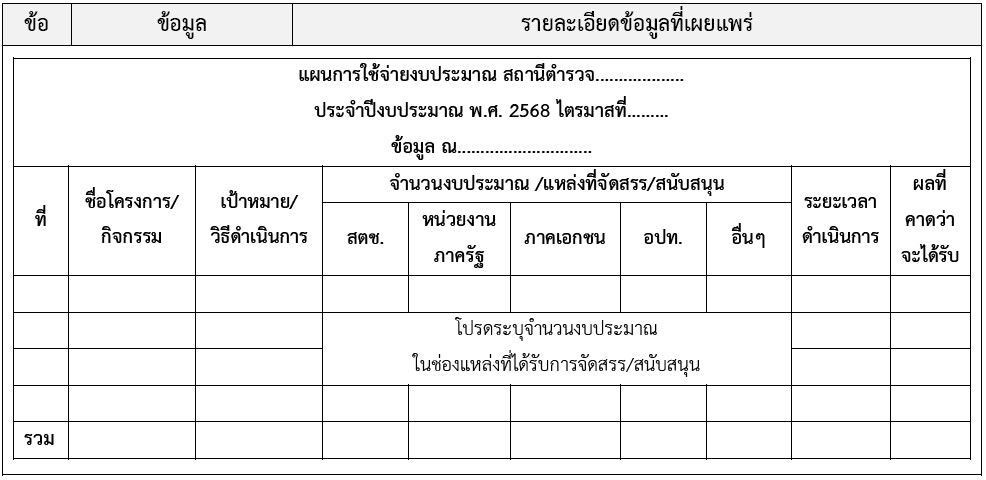 แผนการใช้จ่ายงบประมาณ สถานีตํารวจ